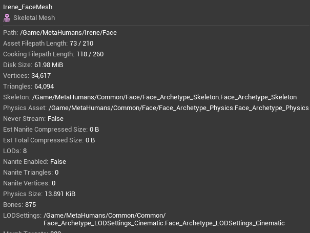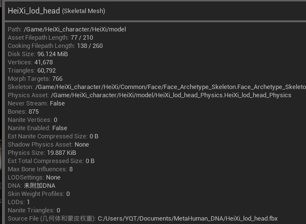 Skeletal Mesh 你的 MetaHuman Face Mesh