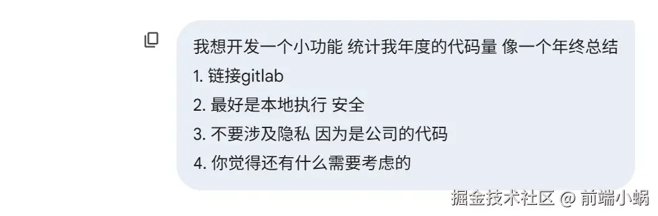 - 绝对隐私:工具只能读 Commit 的元数据(增删行数),别去读我具体的代码内容(毕竟屎山不想被 AI 围观)。