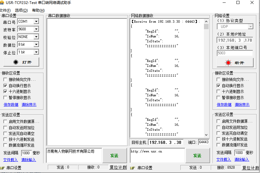 5.使用小黄人可以监听采集器的消息,连接后1会变0