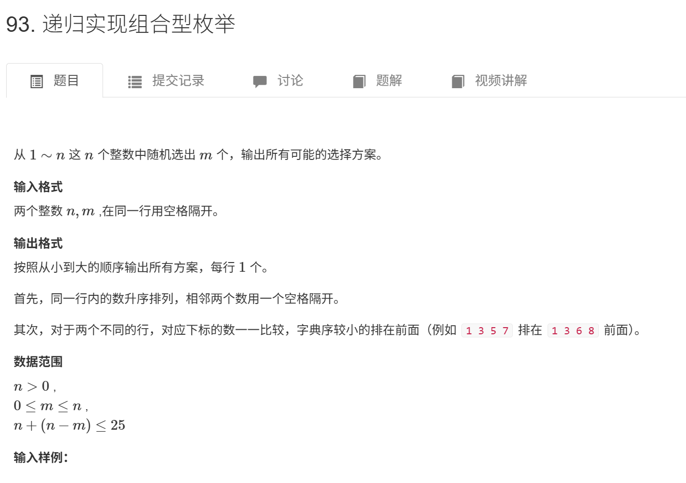 原问题:解决n个位置的数字安放