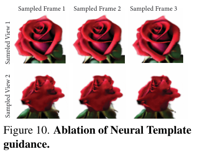 - 神经模板对 4D 一致性的关键约束(Figure 10)