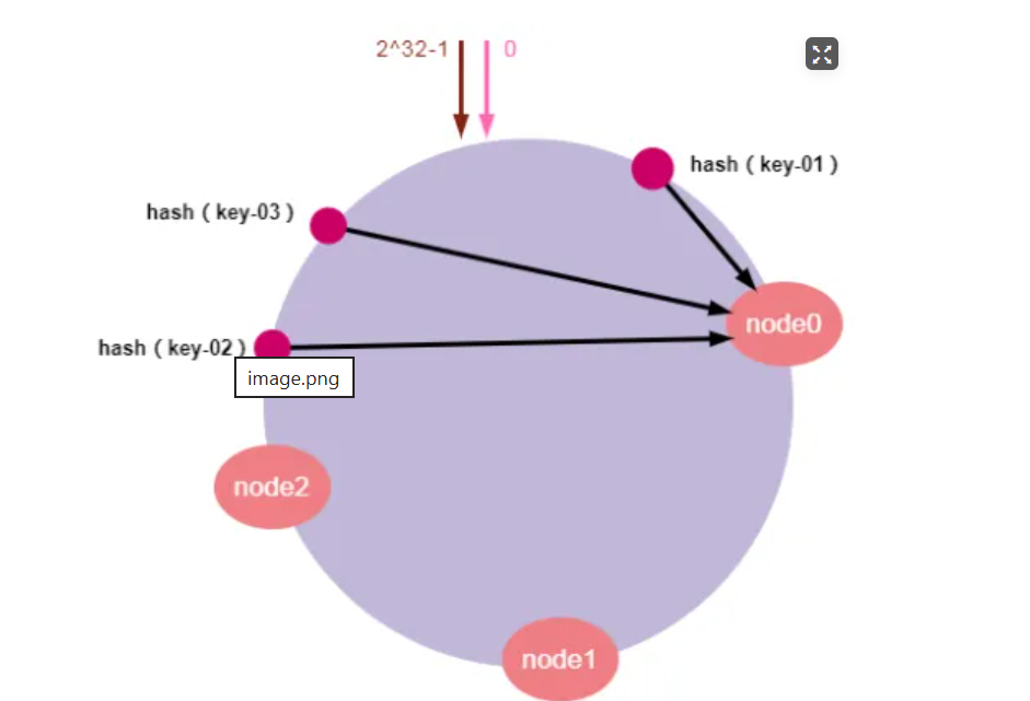 // 3. 闭环处理:如果keyHash大于哈希环所有虚拟节点的哈希值,取哈希环第一个节点