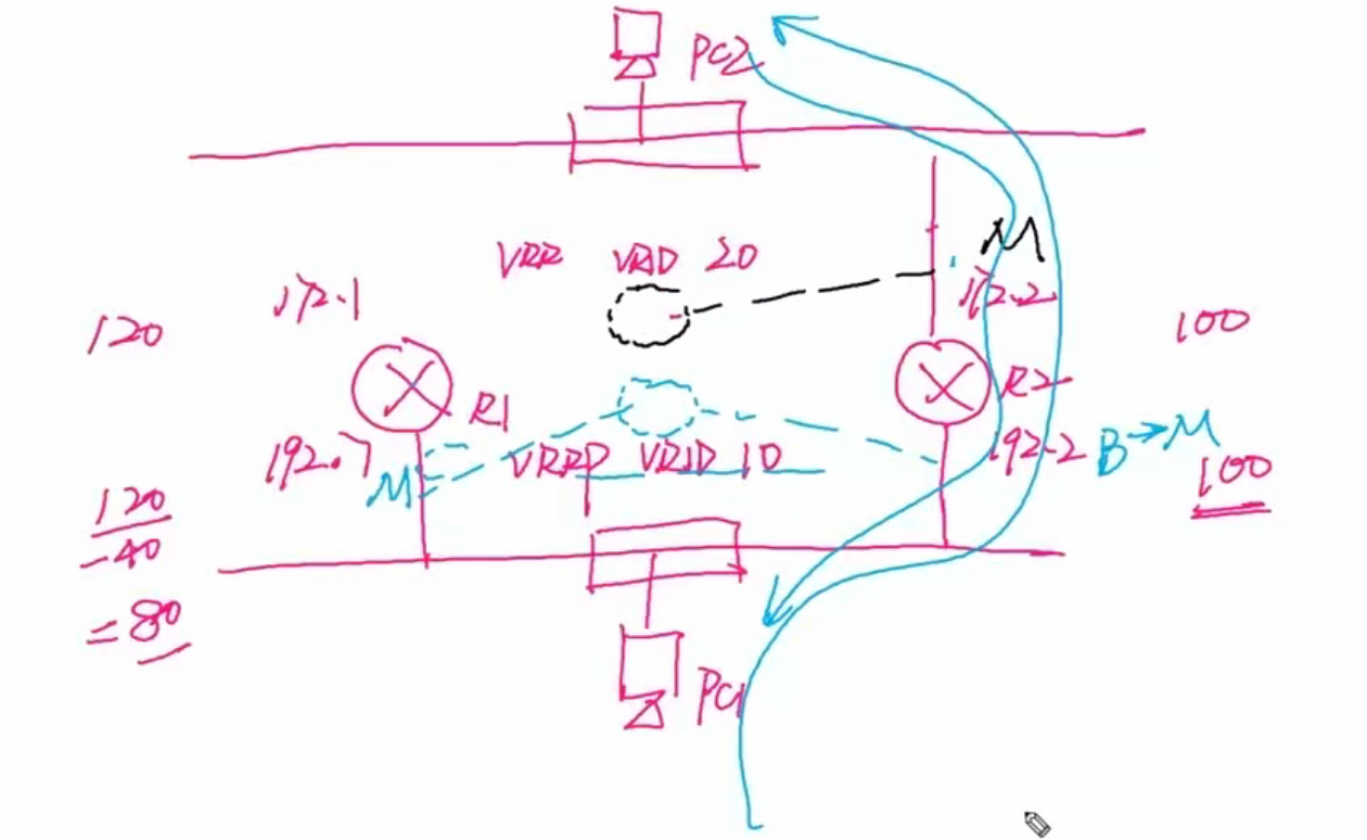 实战意义 :你可以实现负载分担。例如,Router A 在 VLAN 10 的 VRRP 组 1 中是 Master,在 VLAN 20 的 VRRP 组 2 中是 Backup;Router B 则相反。这样流量可以分摊到两台设备上。