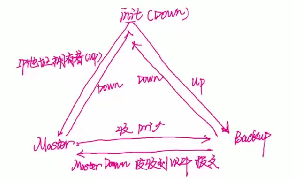 状态机 :VRRP 协议本质是一个状态机,有三种状态:Initialize, Master, Backup。