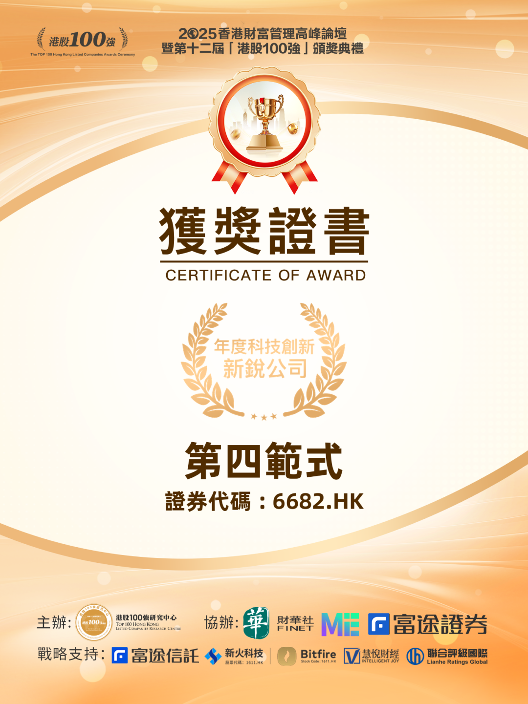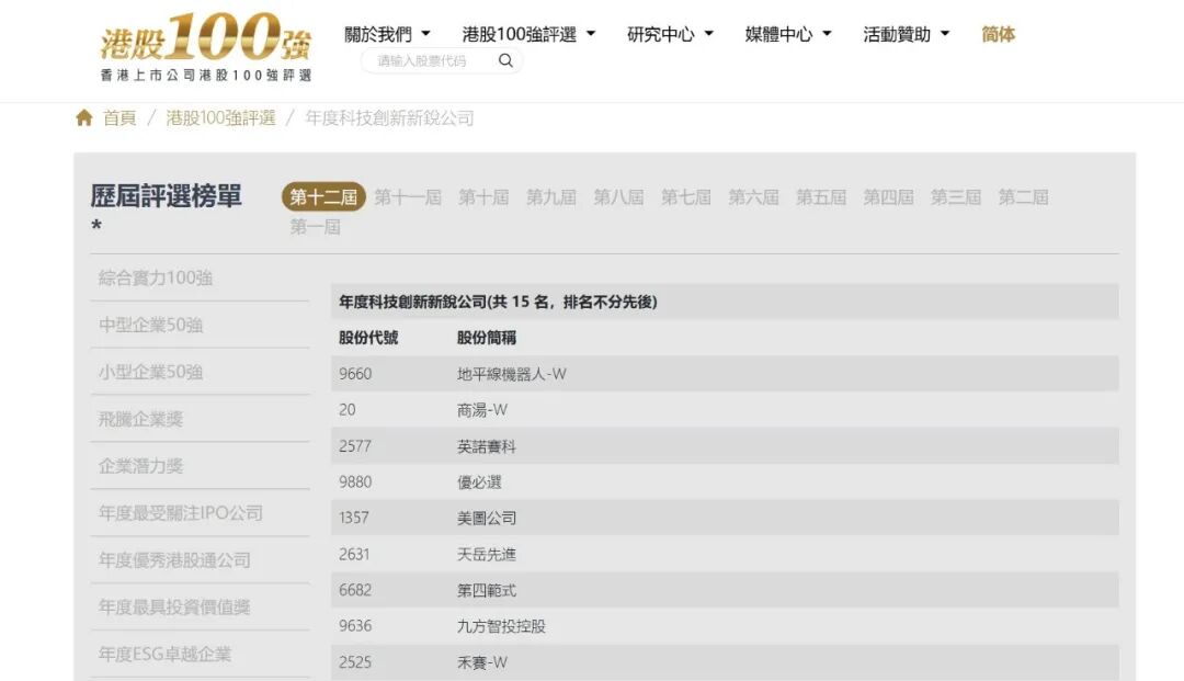 本届"港股100强"评选由港股100强研究中心主办,财华社、ME、富途证券联合协办,以"全球视野、价值发现"为核心理念,聚焦企业的技术原创性、商业模式创新力、产业影响力及长期成长潜力。评审委员会通过多维度综合评估,最终遴选出真正代表中国科技创新前沿方向的优质企业。
