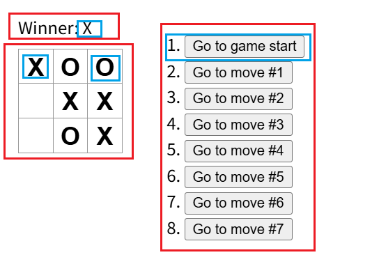 在Board组件中定义一个xIsNext状态,它接收一个布尔变量,控制状态显示。