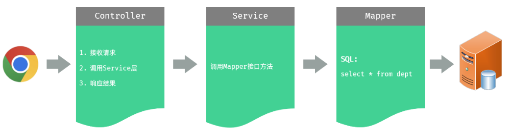 Controller → Service → Mapper → Database