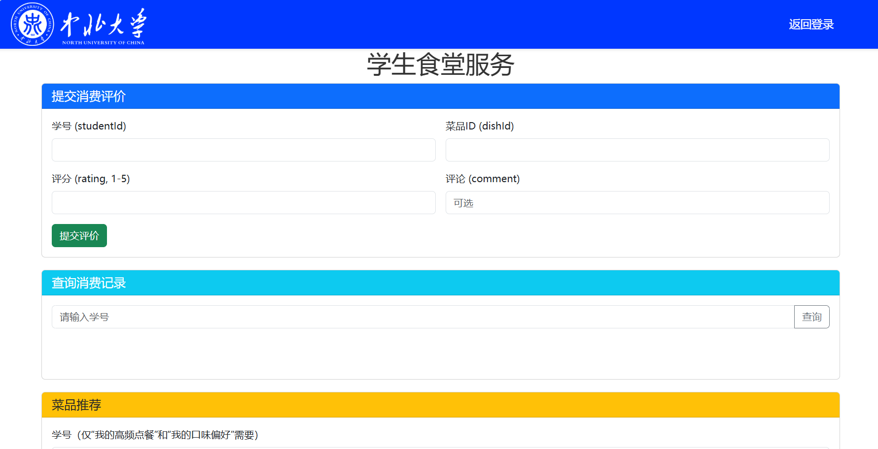 - 评价反馈机制:学生可对菜品打分评论,食堂实时查看