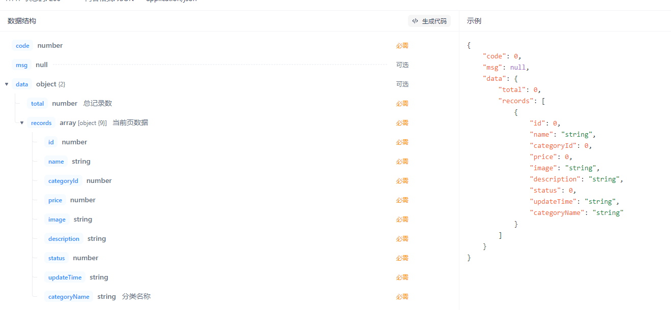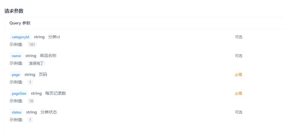 categoryId(分类id)------可选 作用:按分类筛选菜品列表