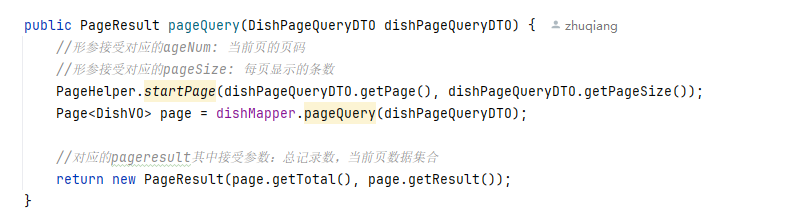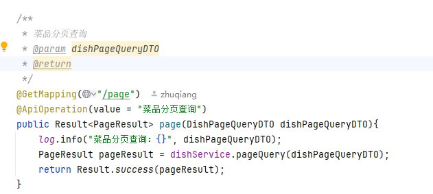 方法签名:Result<PageResult> page(DishPageQueryDTO dishPageQueryDTO)