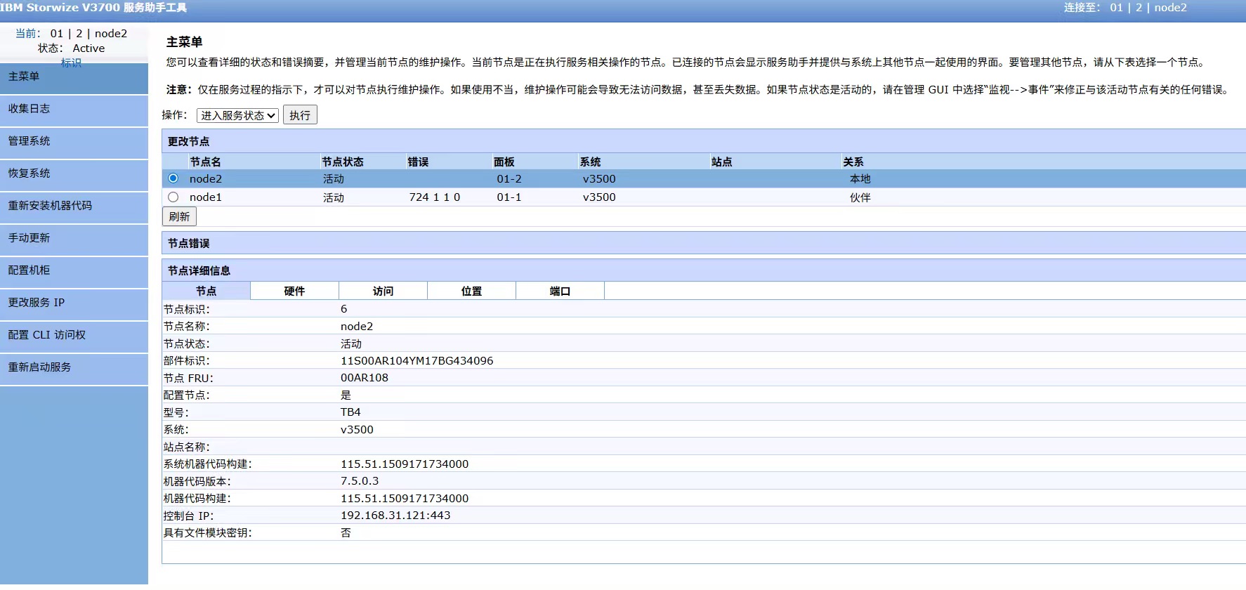 安徽寄修案例分享 IBM V3700存储无法访问 控制器node1 578报错和node2 不识别且IP不通