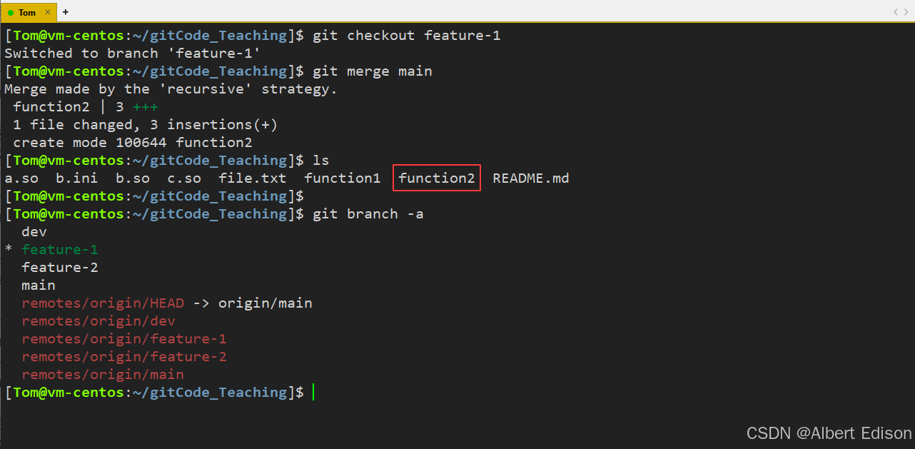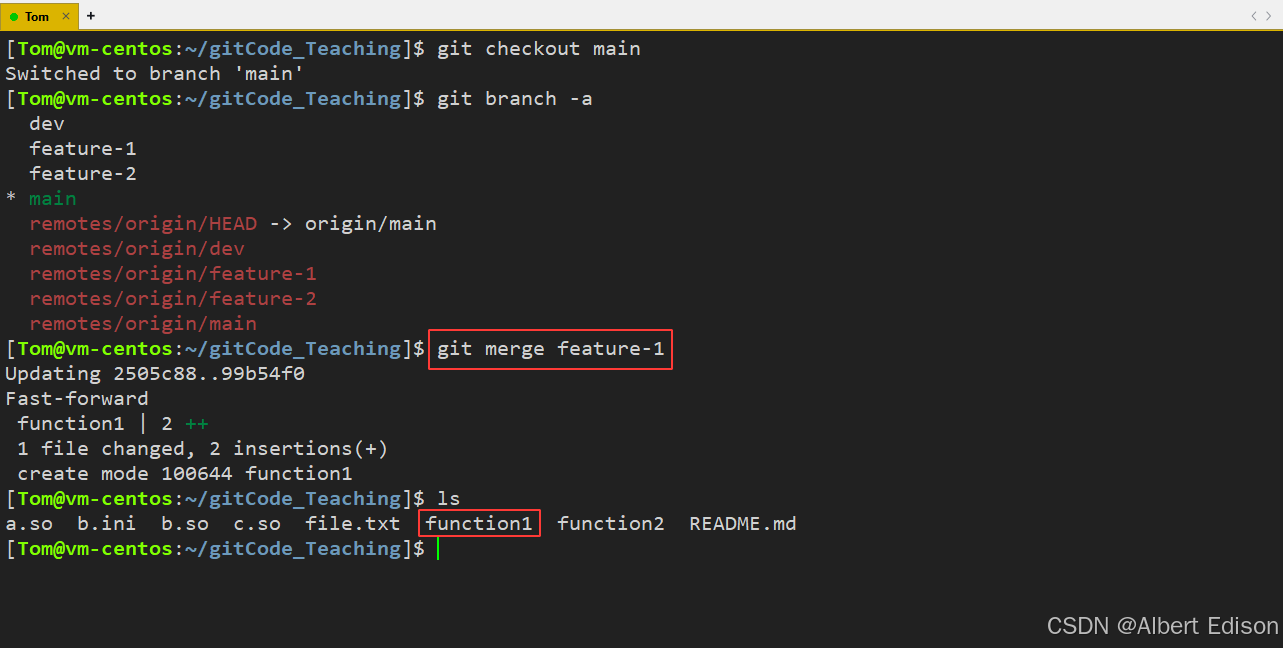 4️⃣ 切换至 main 分支,然后合并 feature-1 分支