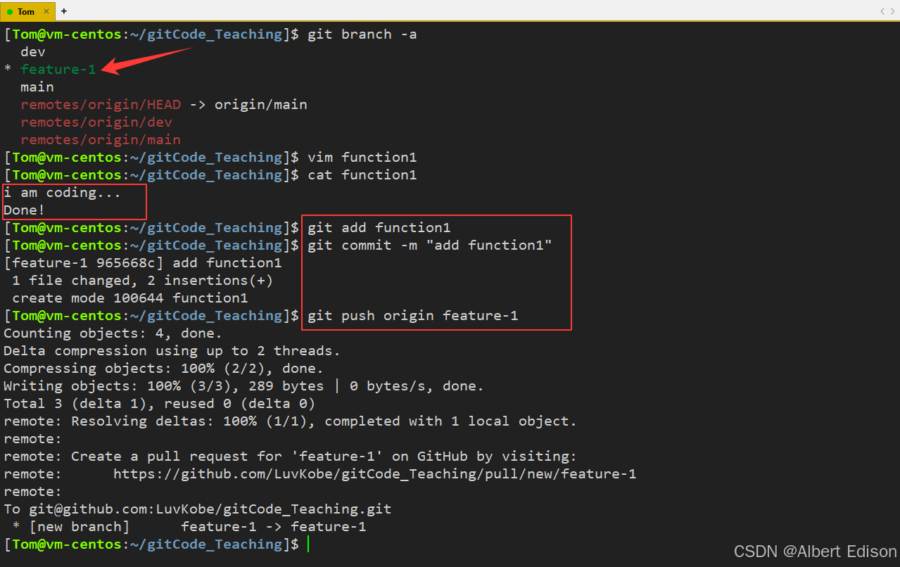此时,在远程仓库的 feature-1 分支也更新了内容: