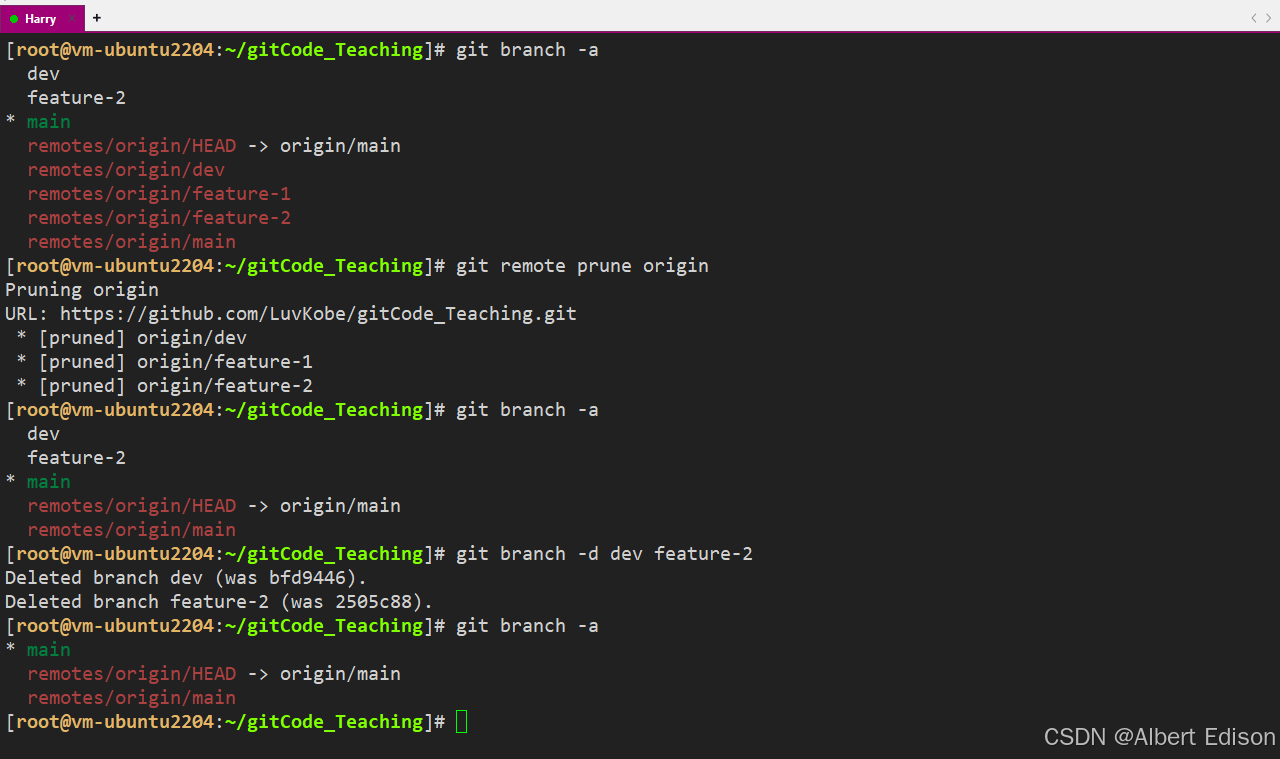 结果如下:可以看到,此时就删除了那些远程仓库不存在的分支。