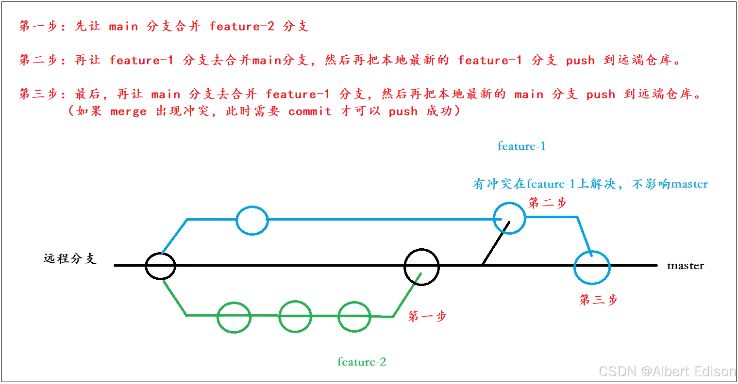 协同开发完成后,在进行合并操作时,为了不让 main 分支出错,我们可以进行下面的操作。