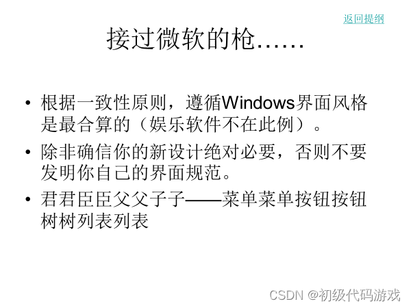 (注,这是我2006年写的,或许是个缅怀,或许是个吐槽。原稿就是PPT,内容都在这里。所有"注"都是本次发表增加的。所有这些原则,并不仅仅是关于界面的,而是关于所有程序设计和任何事情的。)