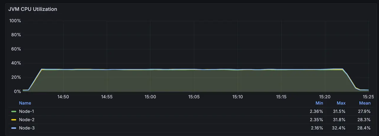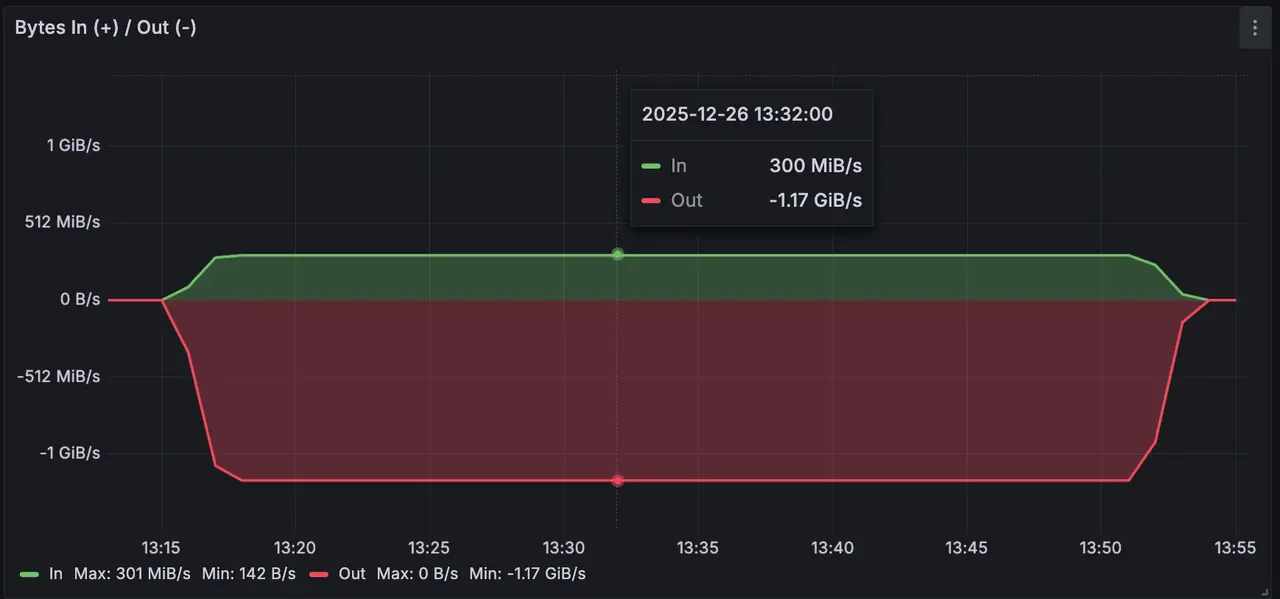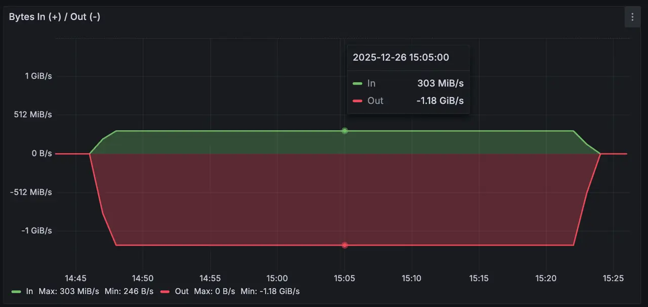 - 使用 OpenMessaging 基准测试框架,写入总吞吐 300MiB/s,Fanout 比例为 1:4;