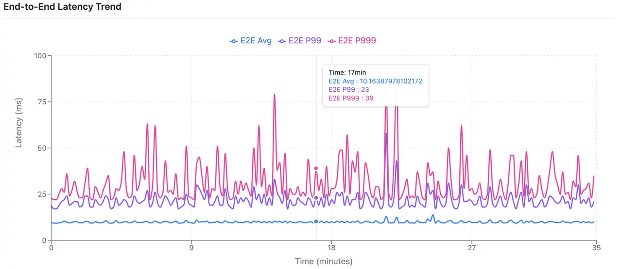 为了在真实生产环境下验证这些架构优势,我们进行了一系列性能基准测试,重点关注客户端观测到的端到端延迟。