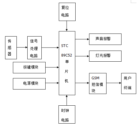 图2-1 基于GSM短信模块的家庭防盗报警系统
