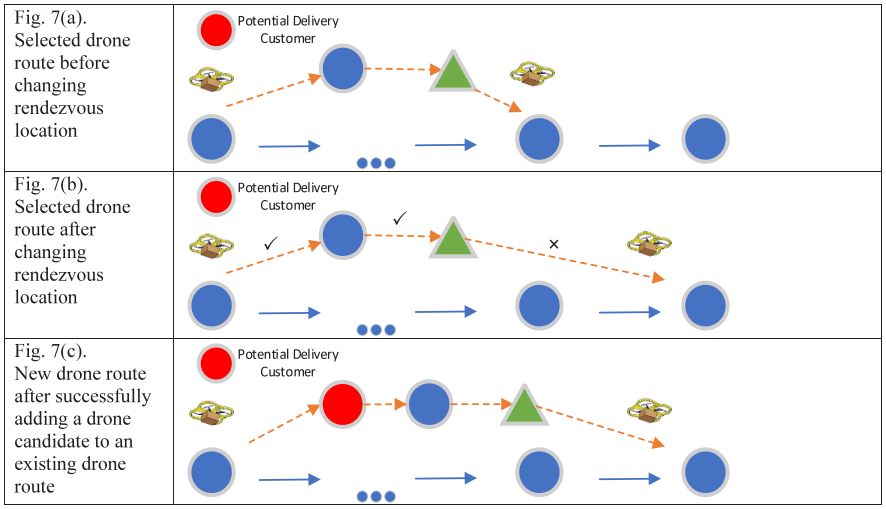 当 k = 3 k=3 k=3时,算法对难以调度集合 W W W中的客户进行最后一次尝试,按 FIFO 顺序将其插入现有无人机路径。插入过程与前述方法相同,但接受条件进一步放宽:只要不违反无人机续航和载荷约束,且允许卡车行驶时间相对于无人机飞行时间存在有限比例的等待即可接受。若自上次尝试以来无人机路径未发生变化,则仅处理 W W W 中最新加入的客户,以降低计算开销。
