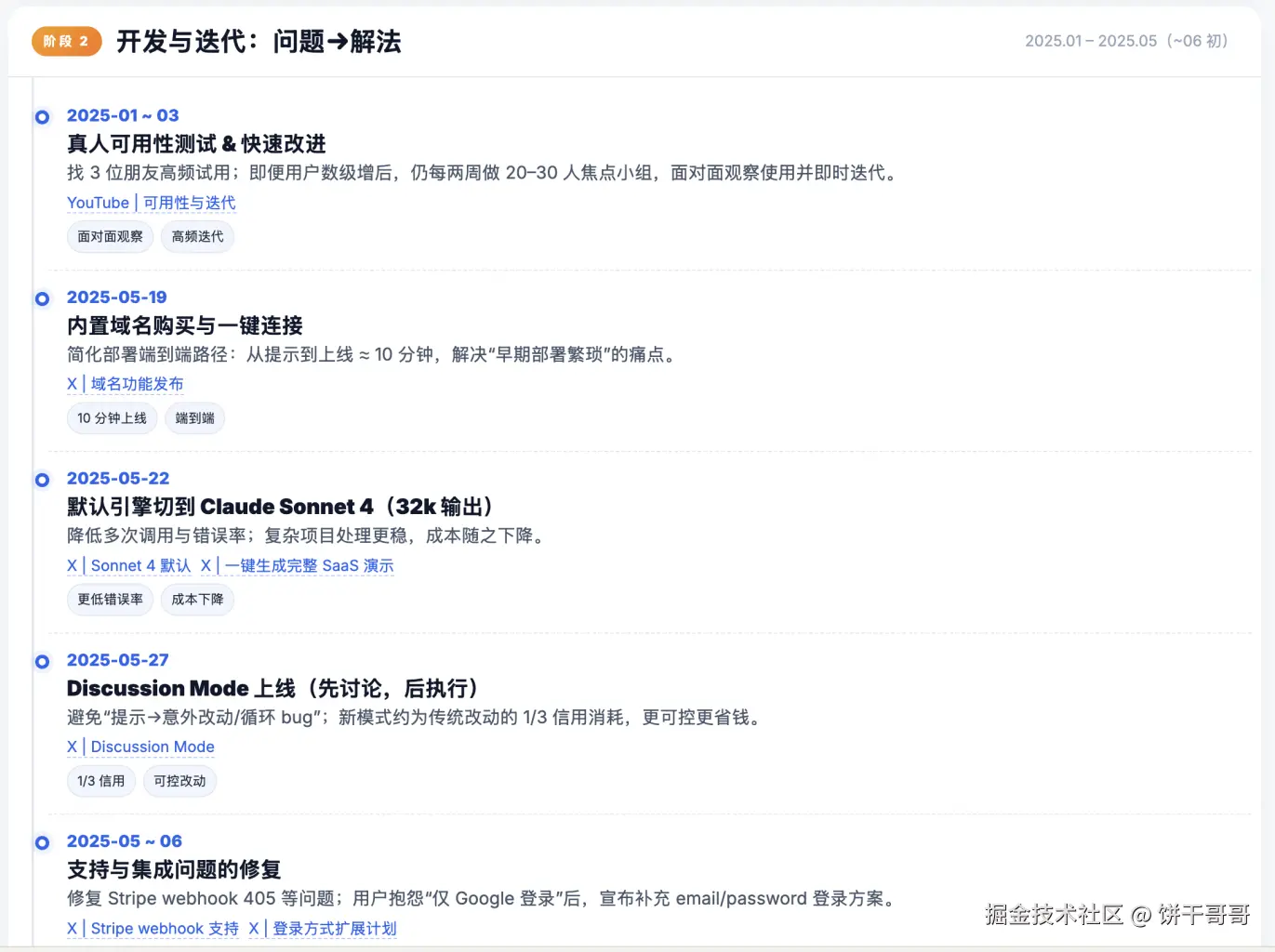 有多夸张?比如有用户抱怨部署繁琐,他马上加上了内置域名购买和自动部署功能;又比如有人反映只能用 Google 登录不方便,第二周就上线了多种登录方式(邮箱、微软、Facebook 等)。