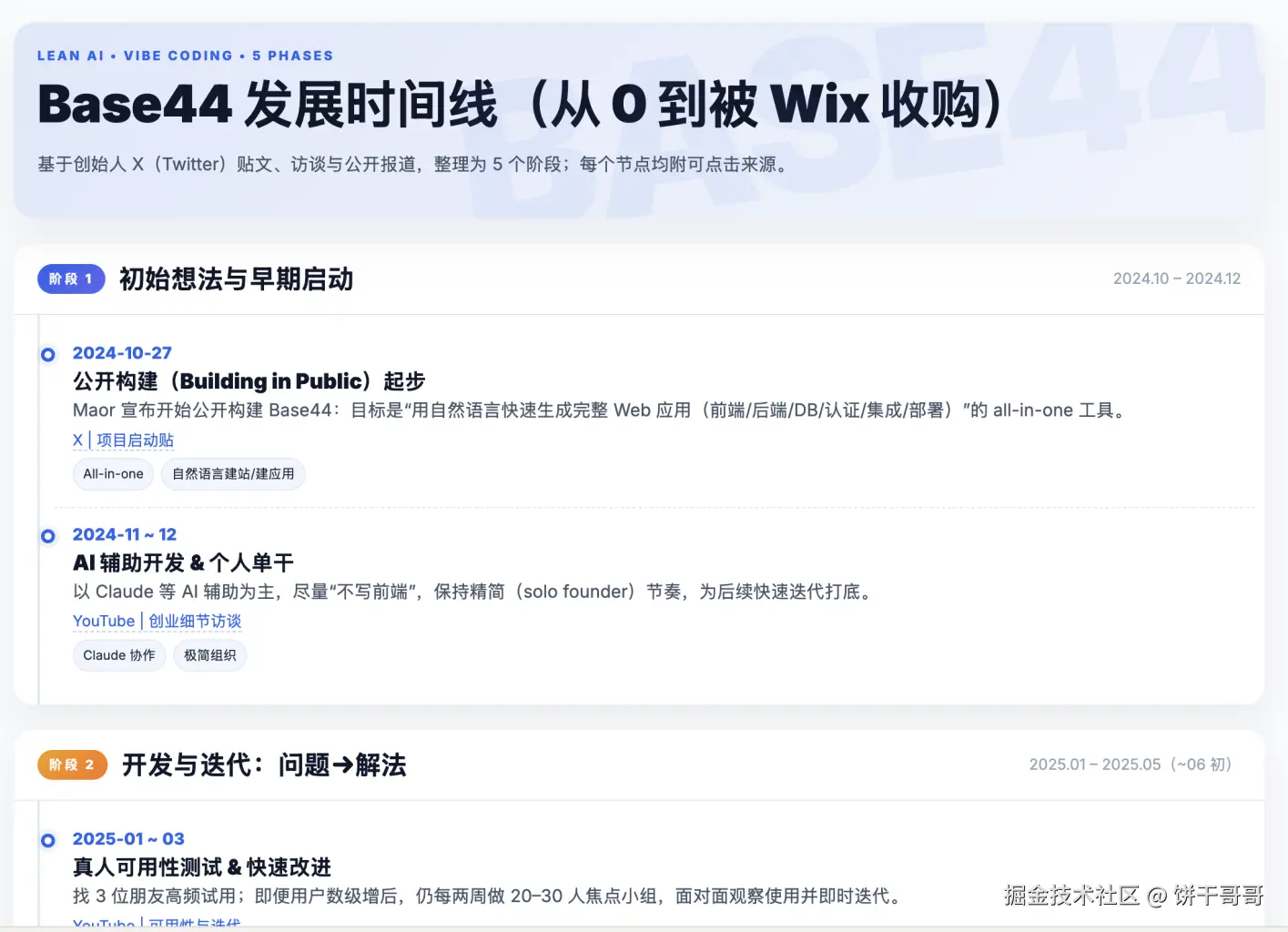 2025年,只有一个创始人、零融资、半年上线就盈利、最终以8000万美金被 Wix 全资收购的 Base44,把极简创业和极致增长的样板推到了所有产品人和创业者面前。