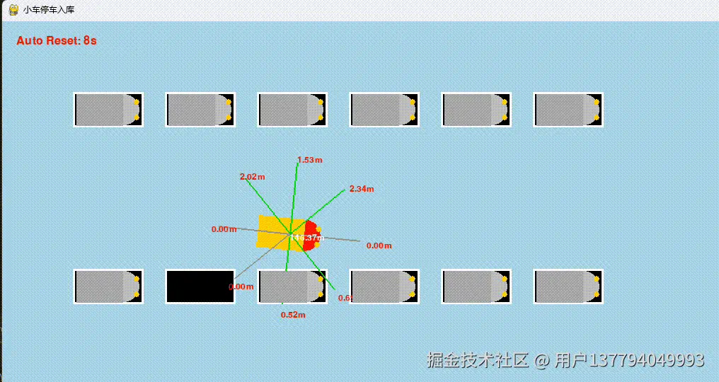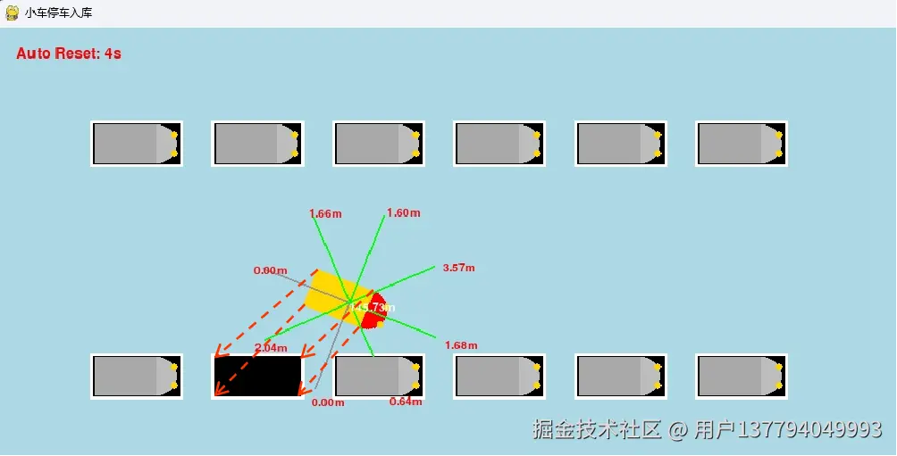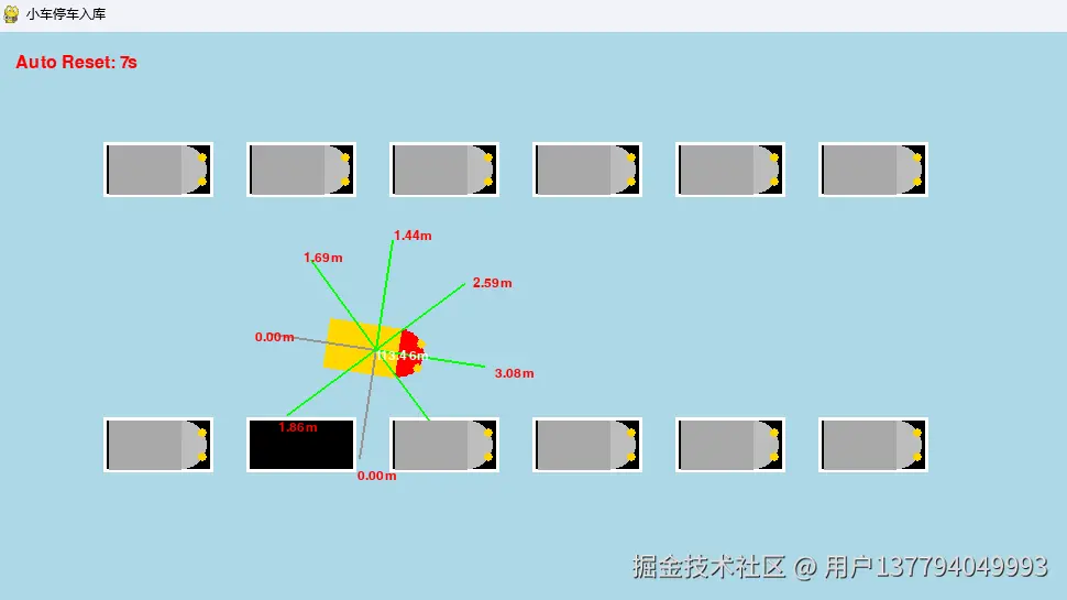 自动泊车的本质是 "小车根据环境(障碍物)调整动作(行驶、转向),最终精准停靠目标车位"。本文用进化(遗传算法)的方式"训练"小车学会这一过程,而不是手动编写规则。