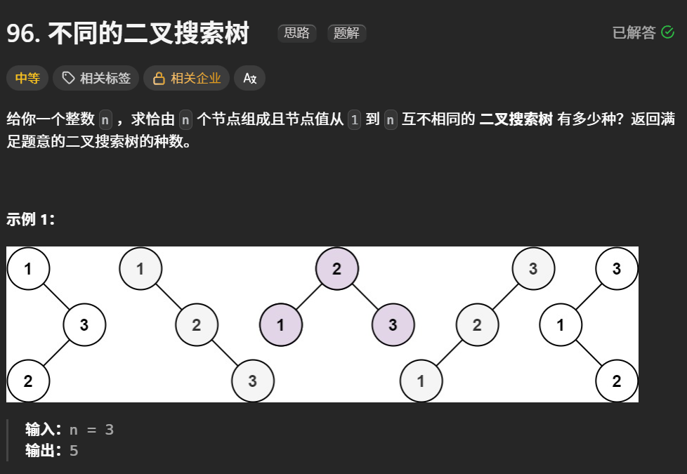 不同的二叉搜索树 (可跳过)