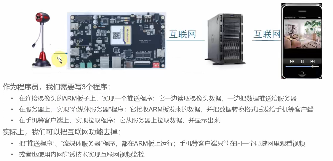 本章将会介绍两种视频监控方案,,其中一种可以运行在低性能的板子上,另一种是热门的流媒体方案。