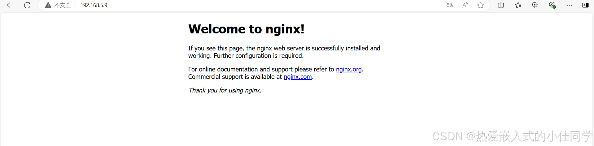 在开发板上运行了Nginx后,它就已经是一个WEB站点了,可以在电脑浏览器里输入开发板的IP访问开发板: