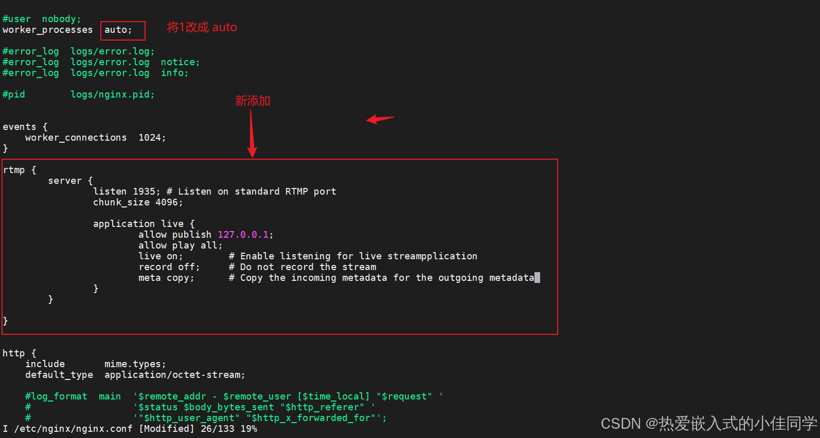 为了让它支持RTMP、HTTPFLV,需要修改配置文件: