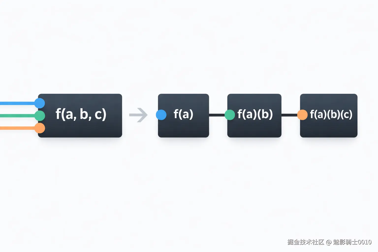 - 定义:将 f(a, b, c) 转化为 f(a)(b)(c)