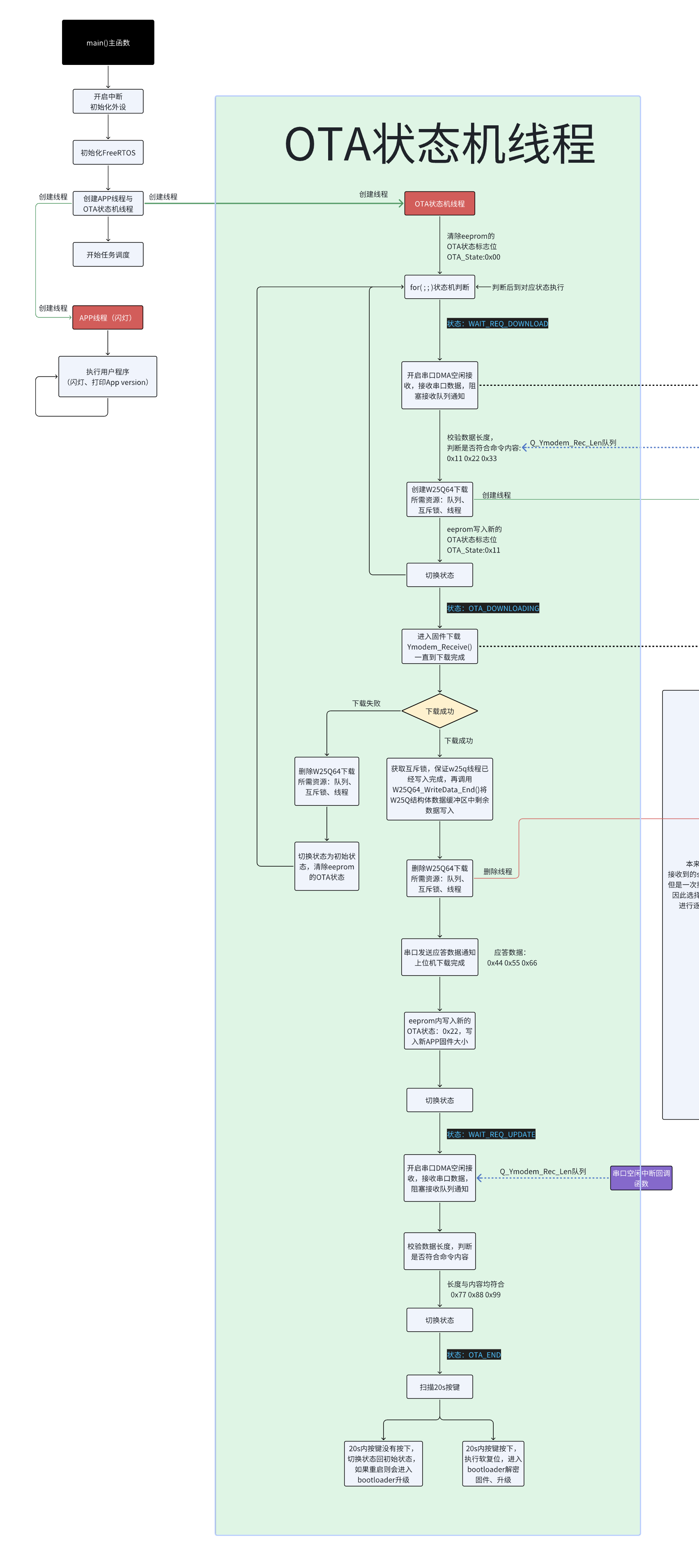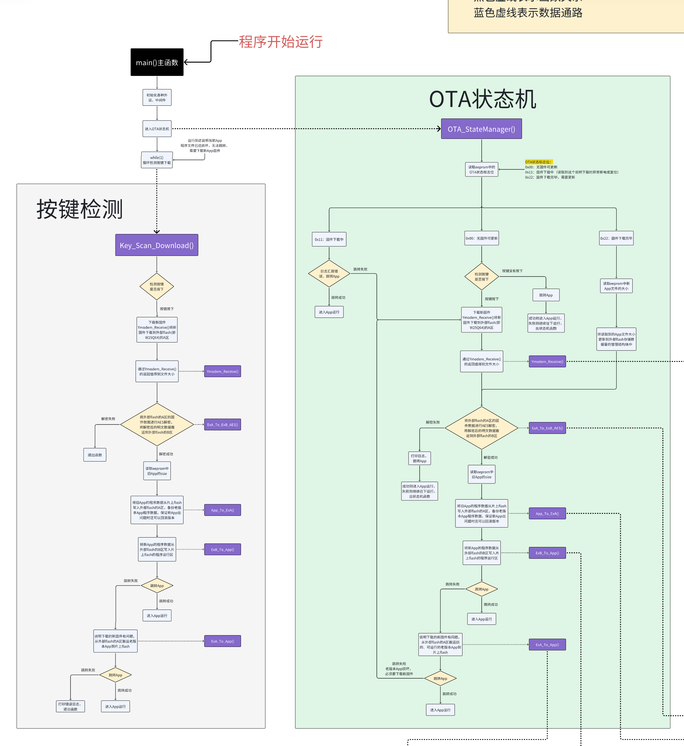 单片机会进入20s的按键检测状态,20s内按下按键,则软复位,进入bootloader,进行升级。否则,会等待重启时进入bootloader升级。