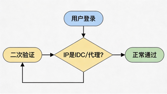 若IP被标记为"数据中心"或"代理",且设备指纹为首次出现 → 强制滑块验证;