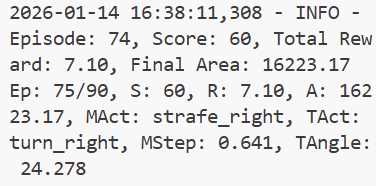 动作空间6个:4个移动2个转头,因为一开始都要跑一遍,动作太多需要跑更多步才能吃到正反馈