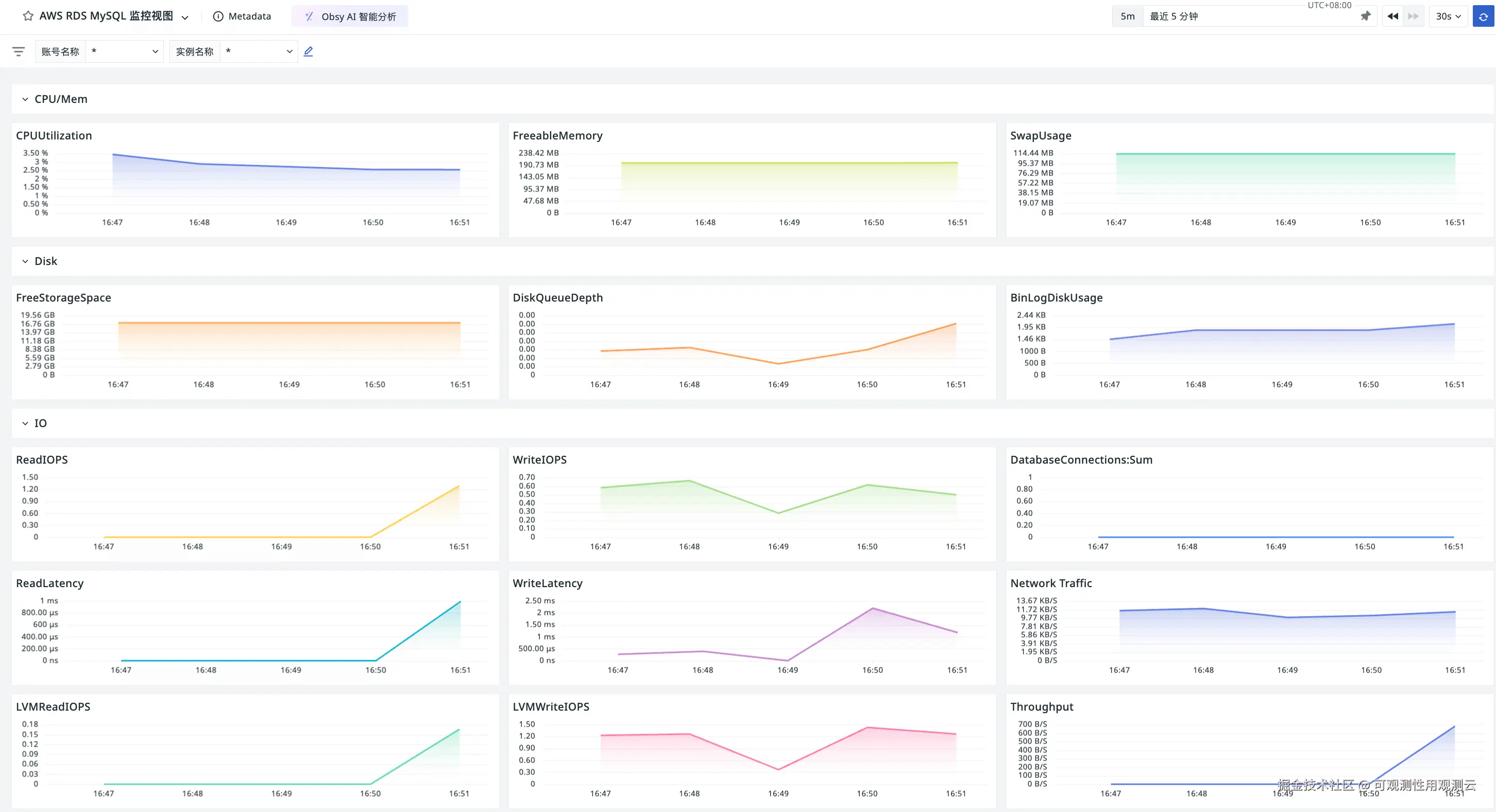 通过将 AWS RDS 的原生监控数据集成到观测云平台,用户可以实现对关系数据库服务(RDS)实例的实时性能监控、资源使用分析以及安全事件的可视化。观测云平台提供的高级分析和可视化功能,包括实时仪表板、智能告警和根因分析,能够帮助用户快速定位数据库性能问题、优化资源成本,并确保数据的高可用性和安全性。