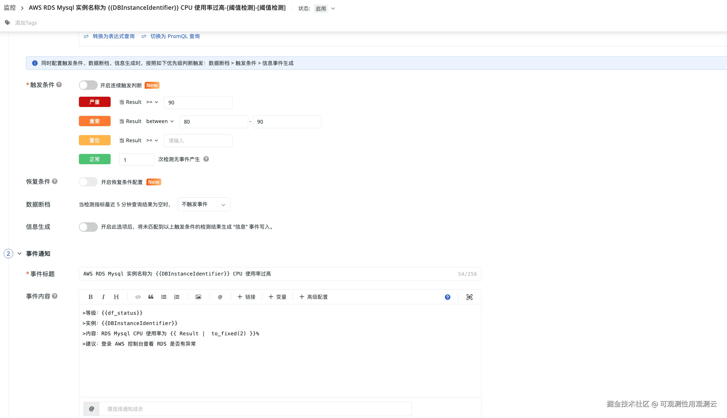 AWS RDS Mysql 实例名称为 {{DBInstanceIdentifier}} CPU 使用率过高