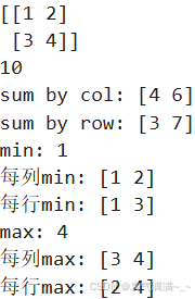 print("sum by col:",np.sum(x,axis=0))#逐列将元素相加