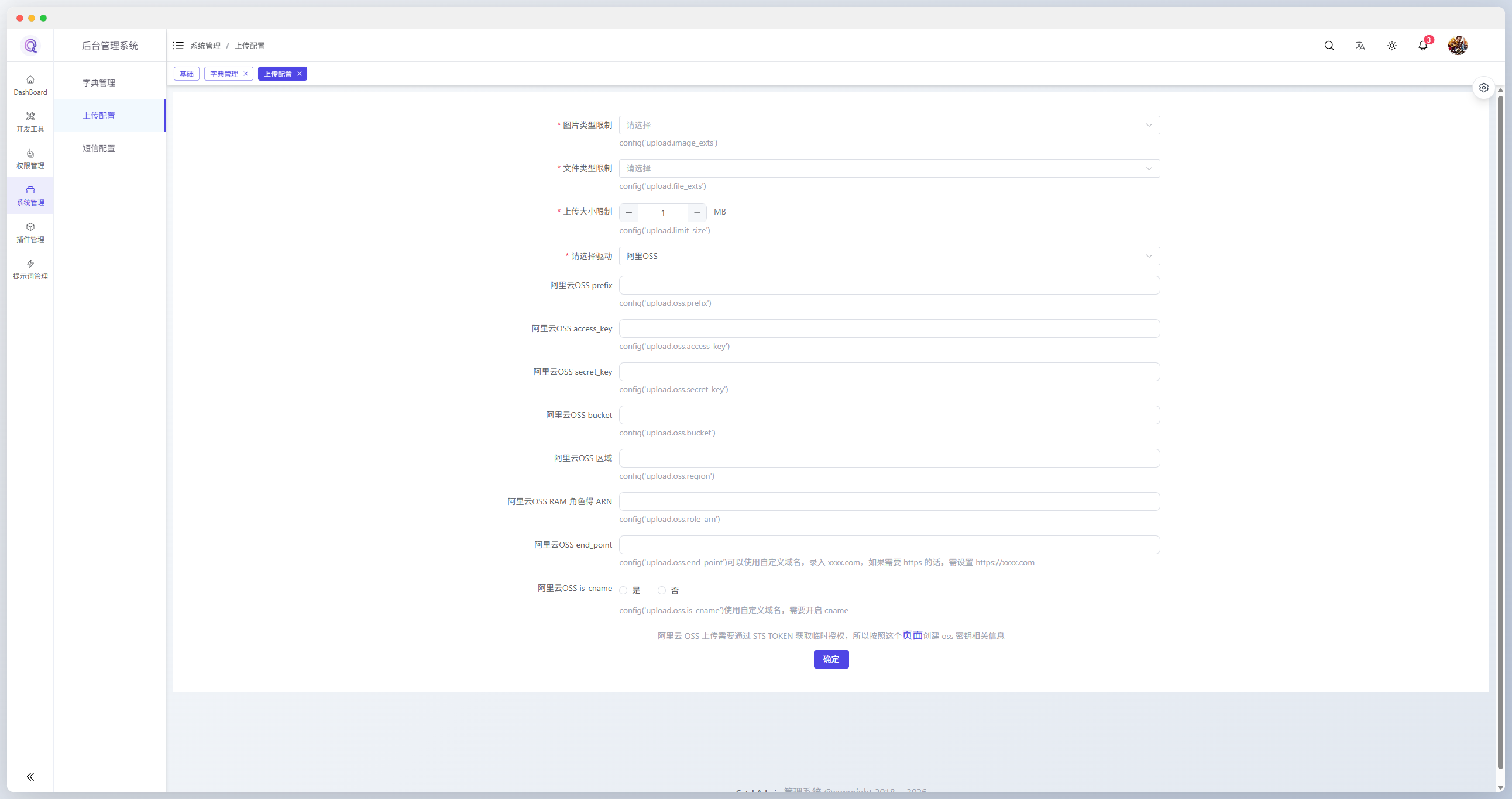 - ☑️ 系统配置:系统常用设置管理