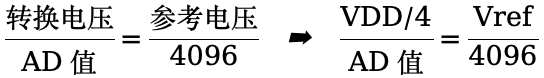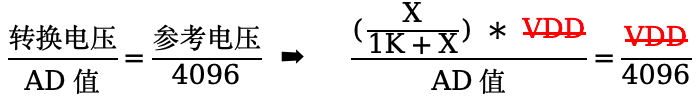 有些芯片的采样通道支持 VDD/4 ,如下公式: