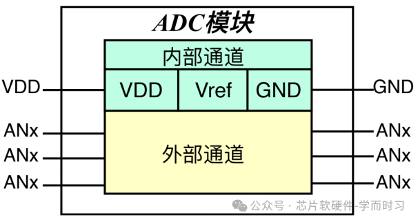 外部通道,通常直接连接到MCU的GPIO,如上图中的ANx。