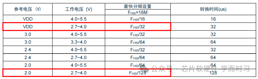 尽管部分用户手册支持选择更高的AD时钟频率,但在实际应用中,其表现会受到参考电压、工作电压等条件的限制。