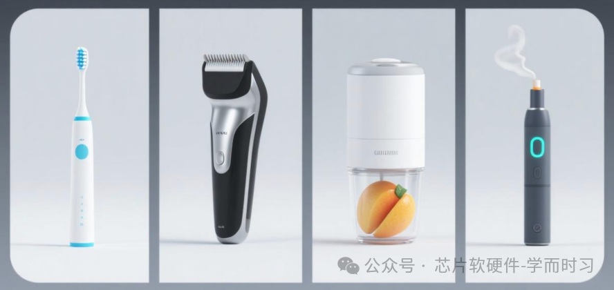 在电动牙刷、电推剪、便携式榨汁机、电子烟等产品的短路/过流检测中,常采用 VDD作为ADC参考电压。其检测原理与NTC温度采集类似,通过判断采样点电压是否超阈值来实现保护。