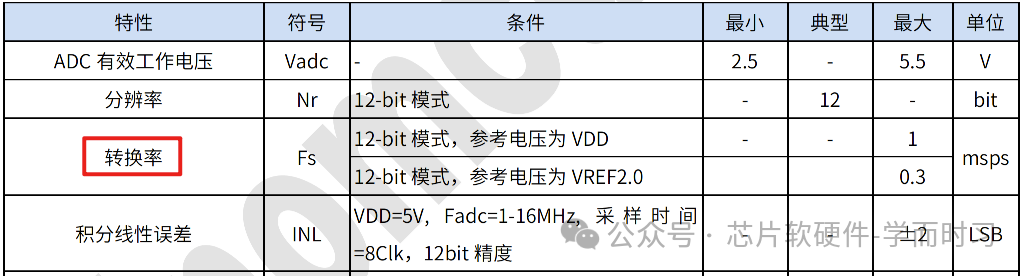 在8051内核产品的电气特性中,单次ADC的采样/转换时间,通常以"采样率"或"转换率"来表示。