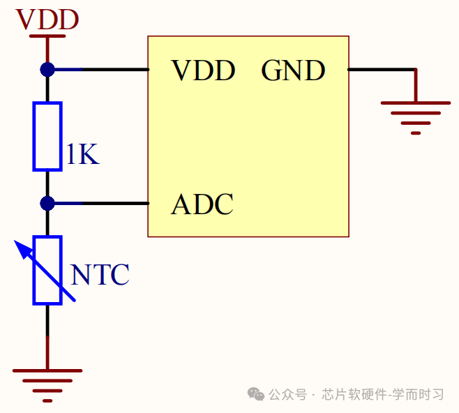 我们以 NTC温度采集 为例,下图是等效电路图