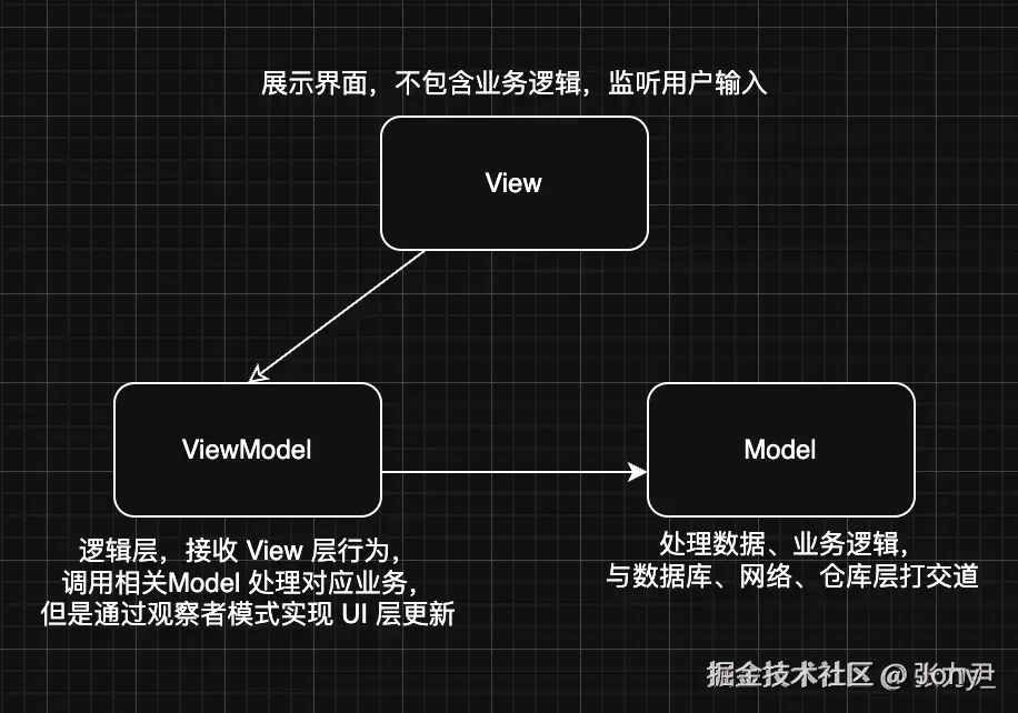 - VM:ViewModel 层,响应用户行为,通过观察者模式更新 UI