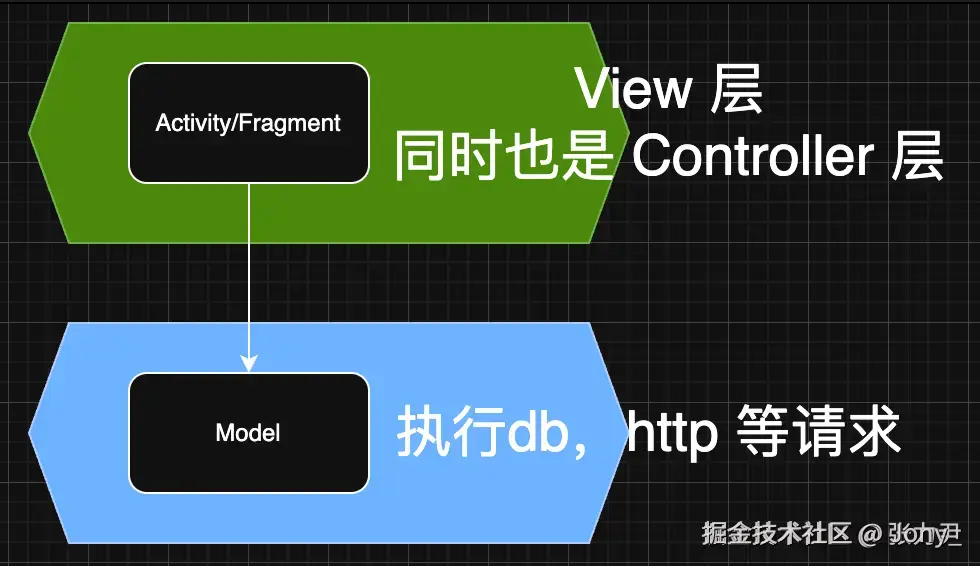 - C:Controller 层,处理业务逻辑,用户行为,通常来说,这一层的执行的逻辑也是放在了Activity/Fragment 中,导致 UI 层耦合严重
