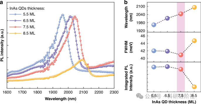 图2:不同InAs厚度单层InAs/InP量子点的光学表征