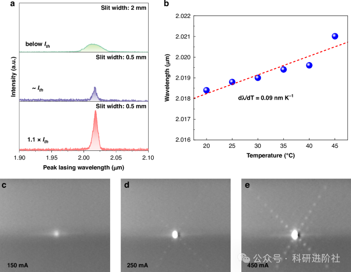 研究团队采用五层堆叠的InAs/InGaAs/InP量子点结构,通过分子束外延技术生长,成功实现室温下2.018μm的激光发射。