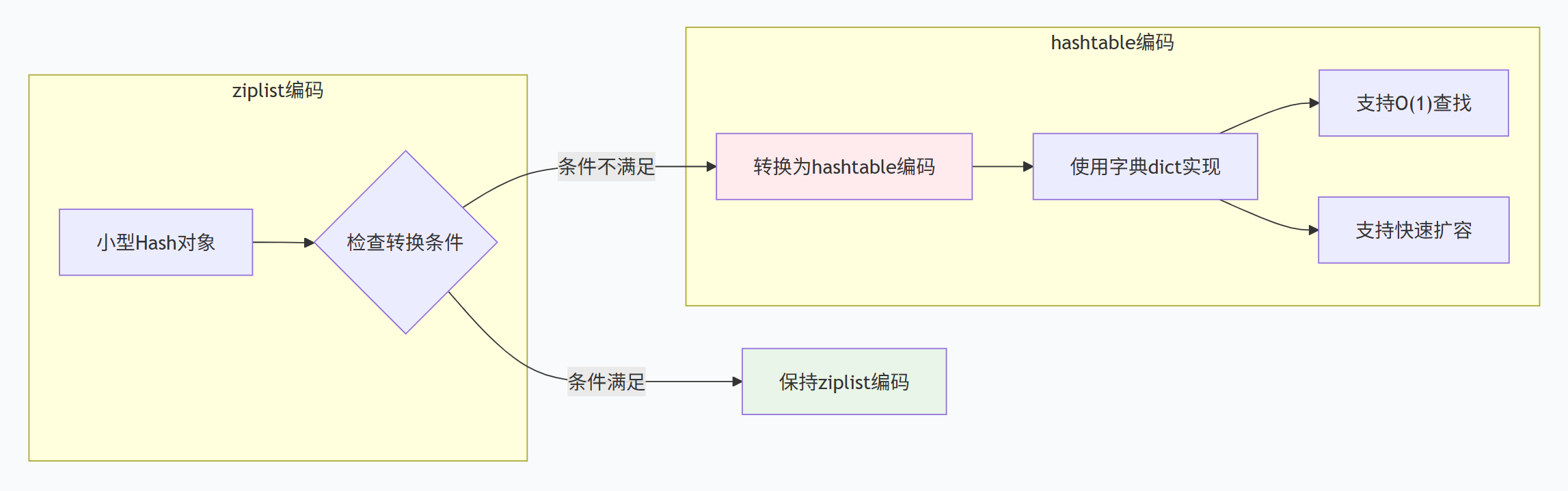 ziplist优势 :内存紧凑,连续存储,适合小型Hash